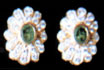 Each earring centers on an oval shaped emerald (0.75 cts), surrounded by diamond set petals (1.05 cts), mounted in 18K gold.