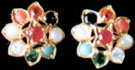 Each earring centering on a ruby, within a gold star bracket surrounded by eight precious stones including a diamond, to give the auspicious navratna (nine stone) jewel, mounted in 18K gold.
