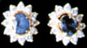 Each centering round an oval shaped sapphire (weighing 0.98 cts), within a round cut diamond frame, mounted in 18K gold.