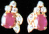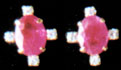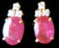 Each earring designed as an oval shaped ruby, paired with round cut diamonds in 18K gold mounting.