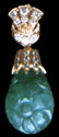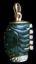 Designed as a unique, carved emerald of 17.62 cts, enhanced by 0.35 cts of diamonds to cite an unmatched example of beauty in pendants. Mounted in 18K gold.