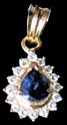 A pendant centering on a pear shaped 1.18 ct sapphire, surrounded by 0.32 cts of diamonds, mounted in 18K gold.