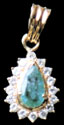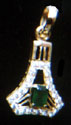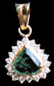A pendant centering on a modified rectangular emerald weighing 0.55 cts, surrounded artistically by round diamonds weighing 0.39 cts, mounted in 18K gold.