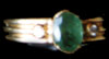 Designed as a singular emerald, flanked on both sides by a round cut diamond, mounted in 18K gold.