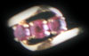 Ring designed as three round cut rubies of 0.78 cts, within an 18K gold cross over mount.