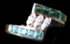 Ring centering on diagonally set three marquise cut diamonds weighing 0.17 cts, enhanced by emerald shoulders of 0.76 cts, mounted in 18K gold.