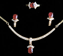 ruby from the center, joined to a 18K gold back chain. Available with matching earrings and a
