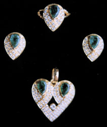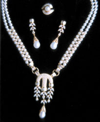 pearl back chain enhanced by round diamonds. With matching earrings & a ring.