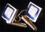 Each of the square shaped cufflink, centering nine chequered diamonds of 0.48 cts, surrounded by blue enamel work, mounted in 18K gold.