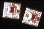 Each of the cufflink centering on a square cut ruby (of 0.63 cts), surrounded by round cut diamonds (0.42 cts) & 18K gold frame.