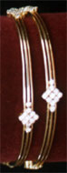 Each designed as 18K sculpted gold bangle, enhanced by round cut diamonds, aesthetically laid at regular intervals.