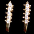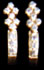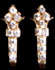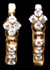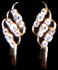Each earring designed as a single column of round cut diamonds terminating with diamond motif, accentuated by gold carving in 18K.