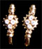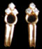 Each earring centering on three round cut diamonds (of 0.08 cts), enhanced by 18K sculpted gold pattern.