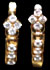 Each earring designed as a single column of round cut diamonds accentuated by 18K gold carving.