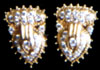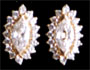 Each earring designed as round cut diamonds fashioned in a traditional elan, enhanced by sculpted 18K gold mounting.