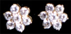 Each earring designed as a round cut diamond set flower, mounted in 18K gold.
