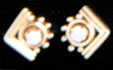 Each centering on a solitaire diamond (of 0.11 cts), enhanced by 18K sculpted gold pattern.