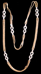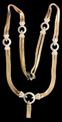 Necklace designed as a twin strand 18K gold chain, spaced by round cut fancy diamond motifs, weighing 8.22 cts.
