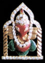 Designed as Lord Ganesha pendant, enhanced by 0.54 ct of diamonds & red and green enamel work, mounted