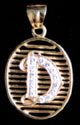 Pendant designed as round cut diamonds of 0.32 cts, set in initial ‘D’, mounted over 18K oval shaped gold openwork.