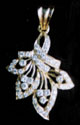 Designed as diamond set scrolling ribbon, suspending diamond set leaves,