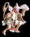 Designed as Lord Hanuman pendant, enhanced by 0.20 ct diamonds & red & green enamel work, mounted in 18K gold.