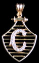 Pendant designed as diamonds set in ‘C’-shaped initial, over the 18K gold openwork shield.