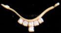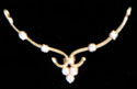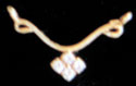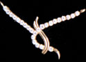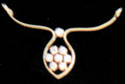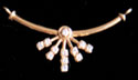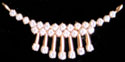 Pendant designed as two curved rows of round cut diamonds, suspending gold columns, each terminating with a round diamond,