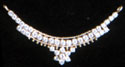 Designed as twin rows of round cut diamonds, suspending more diamonds from the center, mounted in 18K gold.