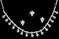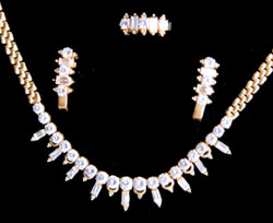 shaped diamonds, joined to an 18K gold back chain, with matching earrings & a ring.