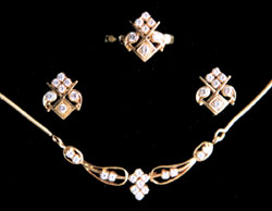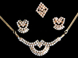 an inverted arch set with similar cut diamonds, joined to an 18K gold back chain. With matching