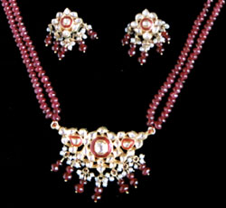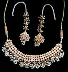 pearl and green bead fringe, joined to a Jardozi cord. A pair of ear pendants en suite.